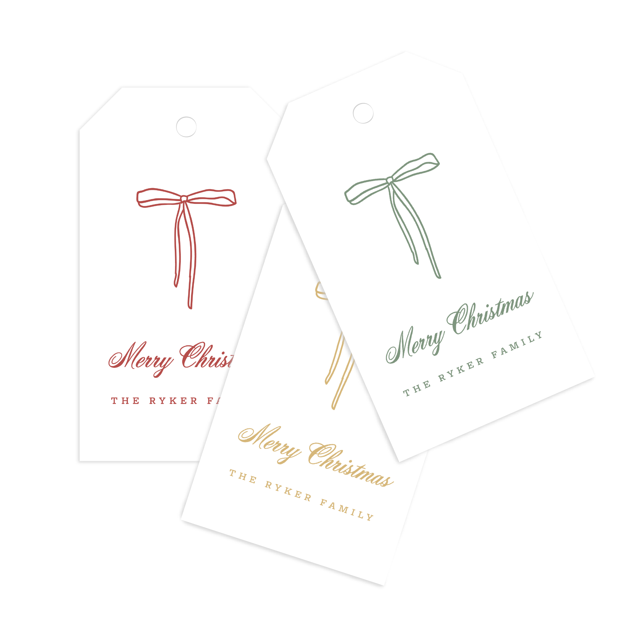 Make your holiday gifts even more fun with personalized gift tags! Bow Gift Tags measure 2" x 3.5" and are printed on eggshell white standard-weight cardstock paper. A pre-cut string for each tag is included.